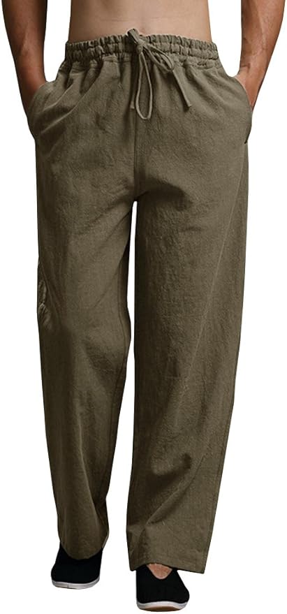Leoclotho Herren Hose Leinenhose Stoffhose Leichte Lockere Lang Freizeit Leinen Hosen Mit Elastisch Bund Amazon De Bekleidung