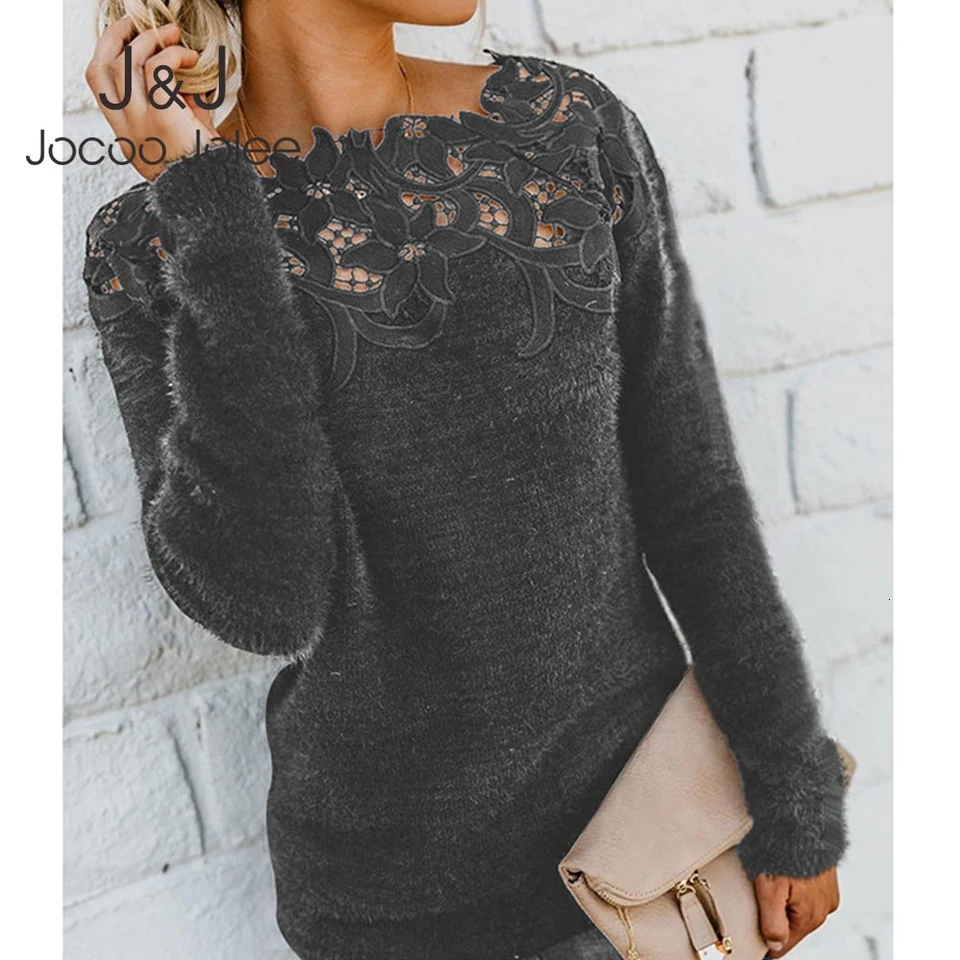 Jocoo Jolee Women Sexy Lace Slash Neck Fleece Patchwork Sweater Elegant Plush Pullover Causal Warm Jumpers Plus Size 5xl Tops Pullovers Aliexpress