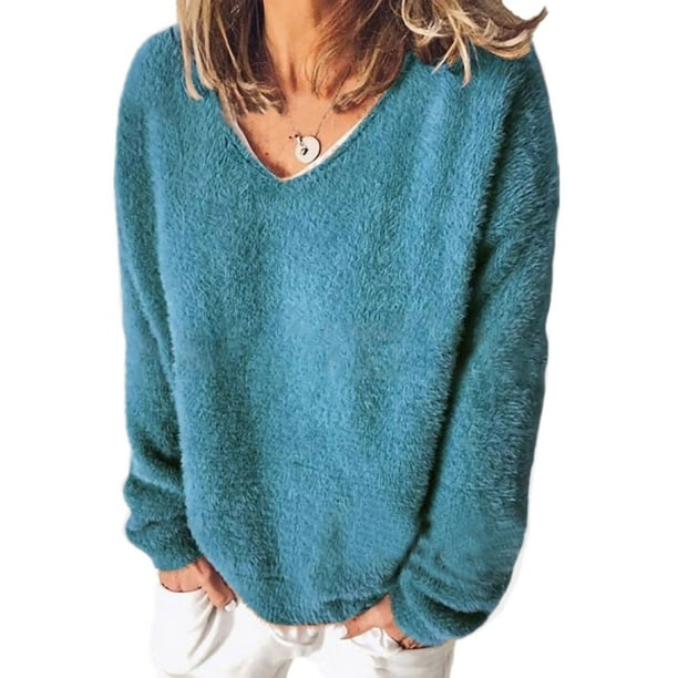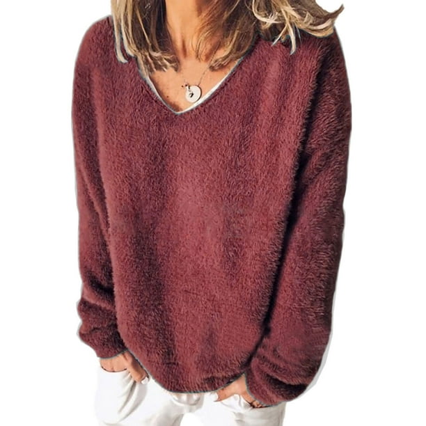 Avamo Avamo Women Baggy Pullover Loose Casual Teddy Bear Fuzzy Fleece Jumper Ladies Long Sleeve Plush Pullover V Neck Top Fashion Solid Color Autumn Fall Sweatshirt Walmart Com Walmart Com