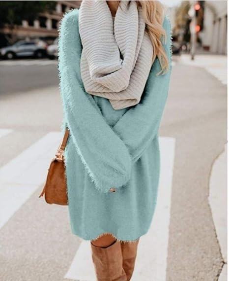 Cjf123 Sweater Plush Pullover Long Sweater Women S Christmas Sweater Dress Autumn Winter Jersey Jumping Robe Robe From Women S Clothes Sky Blue Xxl Amazon Co Uk Sports Outdoors
