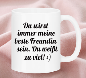 Die Geschenkewelt Becher mit Spruch Traumfrau, Porzellan, 45 cl, mit SilikonDeckel, rosa. Oder auch nicht Dass wir viele lustige beste Freunde Sprüche hier eingestellt haben, hat einen Grund Mit Humor umschifft man jede Klippe im Leben leichter Viele Freundinnen tauschen in jungen Jahren „beste Freunde für immer und ewig“Sprüche Später lacht man über seine kindischen Rituale. 9 Sprüche Freundschaft Lustige u traurige Freundschaftssprüche für beste Freundin, bester Freund Spruchbilder Freude u Enttäuschung findest Du hier.