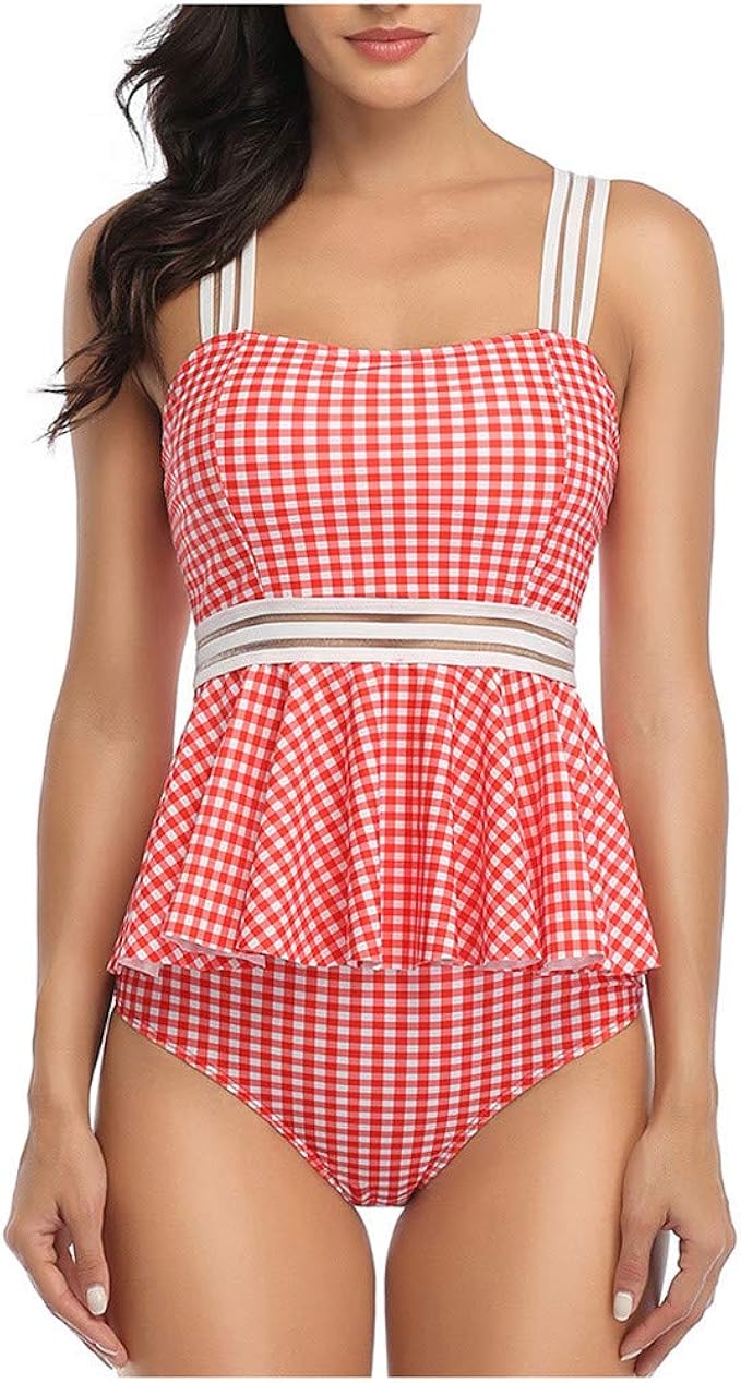 Amazon Com Plaid Print Tankini Sets For Women Tummy Control Swimsuit Push Up Padded Bra Beach Bikini Set Swimwear Two Piece Clothing