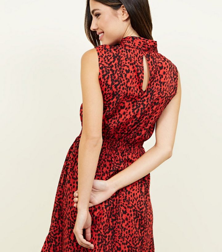 Rotes Kleid Mit Leopardenmuster Und Ruckenausschnitt Mit Banddetail New Look