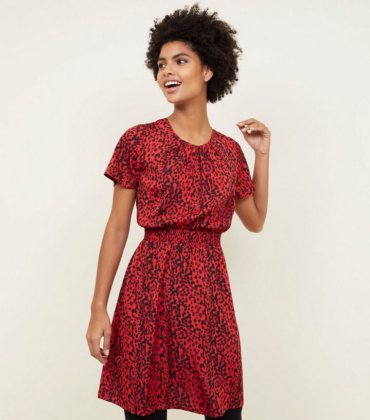 Rotes Kleid Mit Leopardenmuster Und Elastischem Taillenbund New Look
