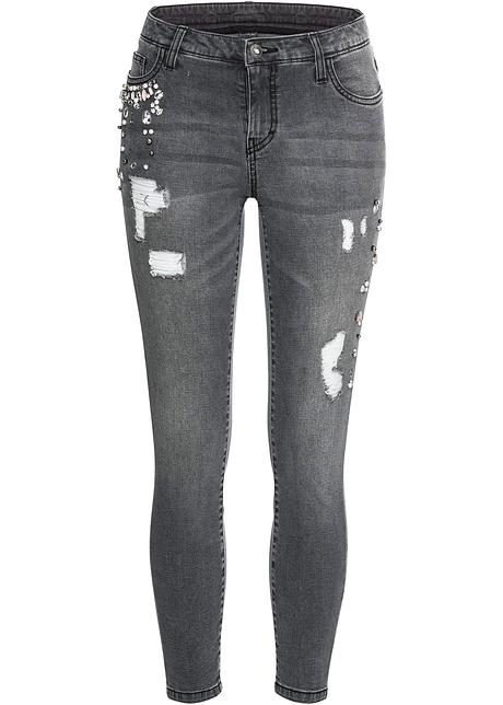 Auffallig Gestaltete Jeans Mit Steinchen Und Destroyed Effekten Vorne Light Grey Used