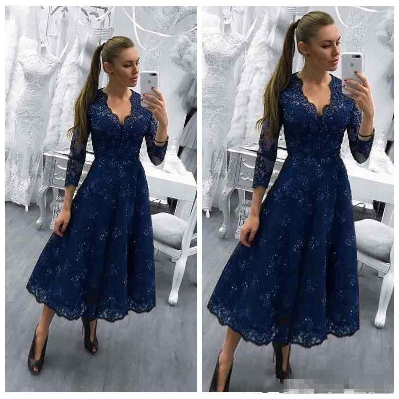 Grosshandel Marineblau Mutter Der Braut Kleider Mit V Ausschnitt Und Langen Armeln Spitze Applikationen Perlen Hochzeitsgast Kleid Tee Lange Abendkleider Von Readygogo 90 42 Auf De Dhgate Com Dhgate