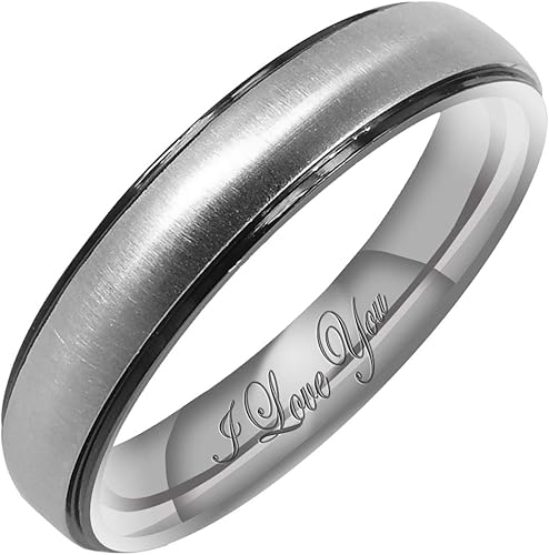 Everstone Damen Ehering Titan Matt Geburstet 4 Mm 6 Mm Gewolbte Kanten Farbe Schwarz Silber Gravur I Love You Amazon De Schmuck