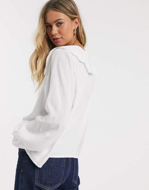 Pull Bear Weisse Bluse Mit Spitzenkragen Asos