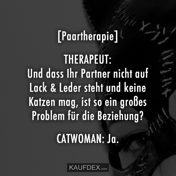 Kaufdex Paartherapie Therapeut Und Dass Ihr Partner Nicht Auf Lack Leder Steht Und Keine Katzen Mag Ist So Ein Grosses Problem Fur Die Beziehung Catwoman Ja Lustigespruche T Co Tzjjvaopxs