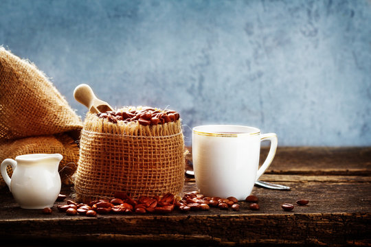 Heisser Kaffee Cappuccino In Tasse Auf Kaffeebohnen Tisch Lizenzfreie Fotos Bilder Und Stock Fotografie Image