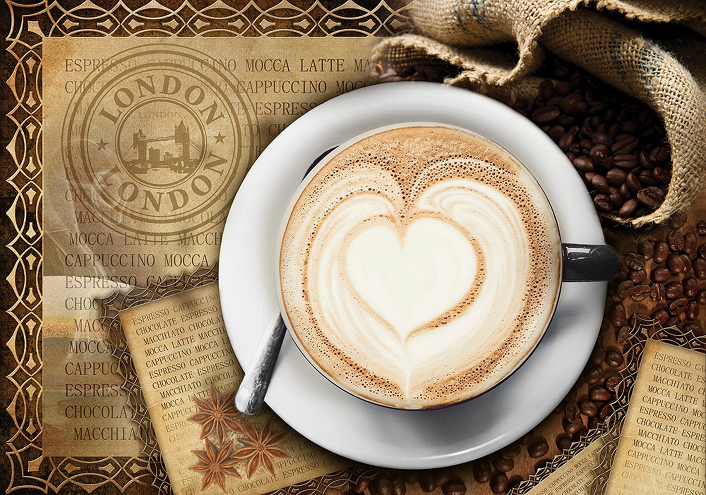 Kiss Fototapeten Thermoglaser Und Leuchtpflastersteine Fototapete No 2150 Vliestapete Kaffee Tapete Cappuccino Kaffeebohnen Herz London Braun