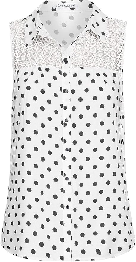 Seventyseven Lifestyle Damen Bluse Hakelbesatz Vorne Punkte Muster Armellos Weiss Schwarz Amazon De Bekleidung