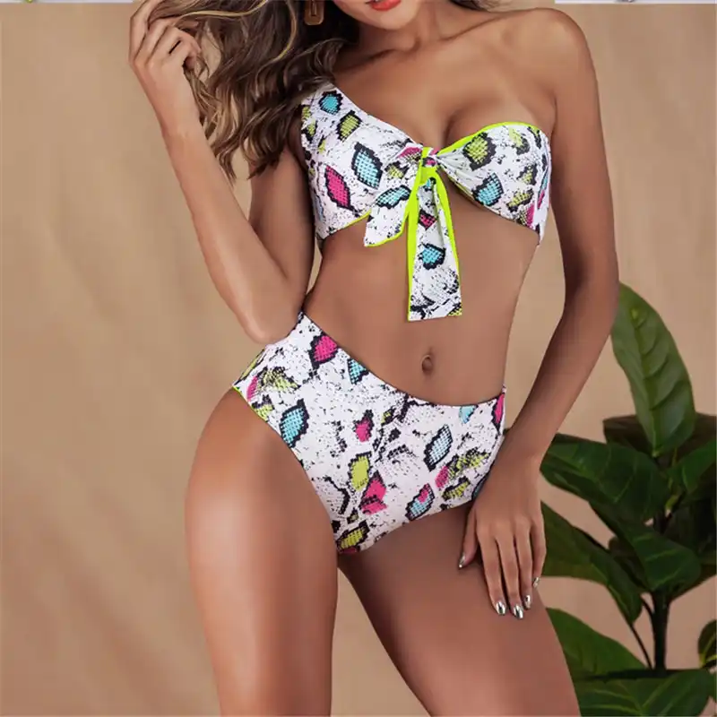 Frauen Bikini Hohe Taille Badeanzug Bademode Chic Schulter Diy Gebunden Neck Gepolsterte Bh Bunte Schlange Drucken Push Up Bademode Bikini Set Aliexpress