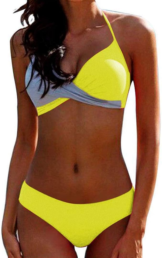 Qingjiu Damen Sommer Nahte Kreuz Einfarbig Neckholder Bikini Split Badeanzug Beachwear Amazon De Bekleidung