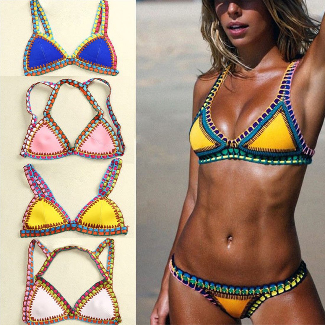 Damen Neopren Bikini Bademode Sommer Gepadddete Cups Trager Bikini Bunt Gemustert Einzigartiges Design Mode Und Dessous Mit Stil Young Fashion