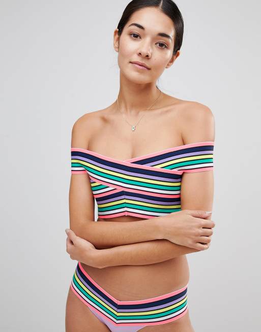 River Island Tragerloser Bikini Mit Bunten Nahten Asos
