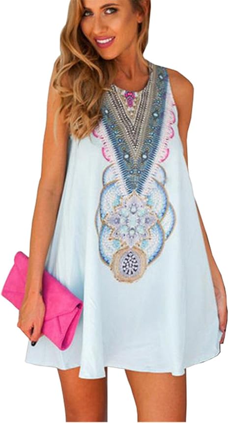 Jothin Damen Rundhalsausschnitt Armellos Drucken Kurz Kleider Sommerkleid Strandkleider Form Shirt S M L Xl 2xl M Amazon De Bekleidung