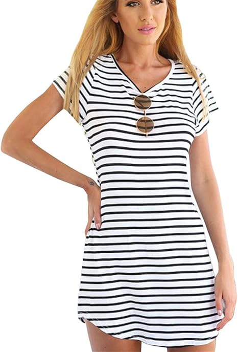 Jothin Damen V Ausschnitt Kurz Armel Striped Kleider Sommerkleid Strandkleider Form Shirt S M L Xl S Amazon De Bekleidung
