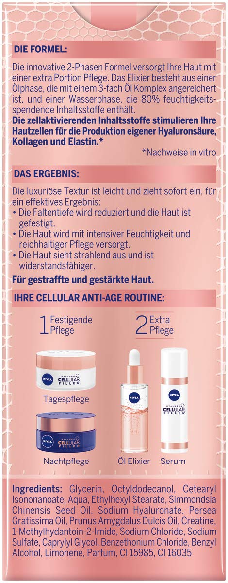 Amazon Com Nivea Facial Oil Hialuron Cellular Filler Elasticity Contour 2 Phase Nourishing Oil Elixir 30ml Beauty