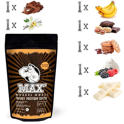 Max Muskel Musli Whey Protein Oats Musli Haferflocken Fein Mit Viel Eiweiss Ohne Zucker Zusatz Nusse Sportlernahrung Fur Muskelaufbau Gesundes Fruhstuck 7er Set Beutel Alle Geschmackssorten Amazon De Lebensmittel Getranke