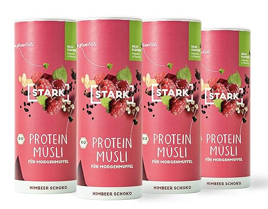 Stark Protein Musli 4x 500 G Eiweiss Musli Als Fruhstuck Und Fitness Nahrung Veganes Bio Proteinmusli Ohne Aromen Und Zuckerersatzstoffe Aspartamfrei Himbeer Schoko Amazon De Lebensmittel Getranke