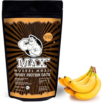Max Muskel Musli Whey Protein Oats Musli Haferflocken Fein Mit Viel Eiweiss Porridge Ohne Zucker Zusatz Nusse Fettreduziert Sportlernahrung Fur Muskelaufbau Gesundes Fruhstuck 500g Beutel Banane Amazon De Lebensmittel Getranke