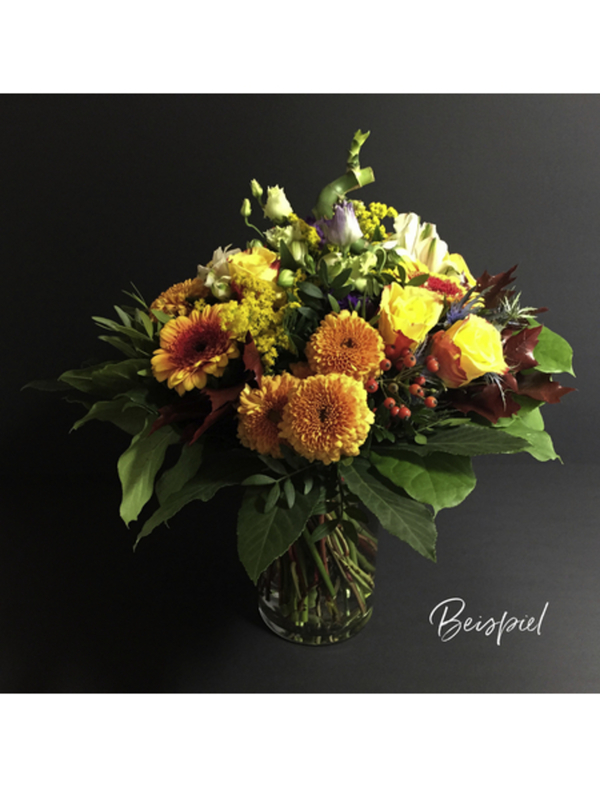 Lassen Sie sich von unserem professionellen Floristen vor Ort ein tolles saisonales Bouquet kreieren Auf diese Weise haben Sie immer das größte bunte Bouquet mit der persönlichen Note des Floristen Immer ein Erfolg für den Empfänger Der Farbton in verschiedenen Farben ist zentral. Blumen in schrillem Orange und Pink sorgen für einen Knalleffekt Die Hagebutten der Zimtrose schließen Lücken und lassen den herbstlichen Blumenstrauß höher erscheinen Herbstliche Tischdeko mit Dahlien So halten die Schnittblumen länger Schnittblumen brauchen gute Pflege, damit sie länger halten Schneiden Sie die Stiele der Dahlien. Rosen Waibel ist stets bemüht Blumen aus der Region anzubieten, damit auch die ökologischen Aspekte mit der Firmenphilosophie sich wieder treffen Gestecke Bundrosen und saisonale Bundblumen mit großem Effekt für den kleinen Geldbeutel frisch, knackig und preiswert.