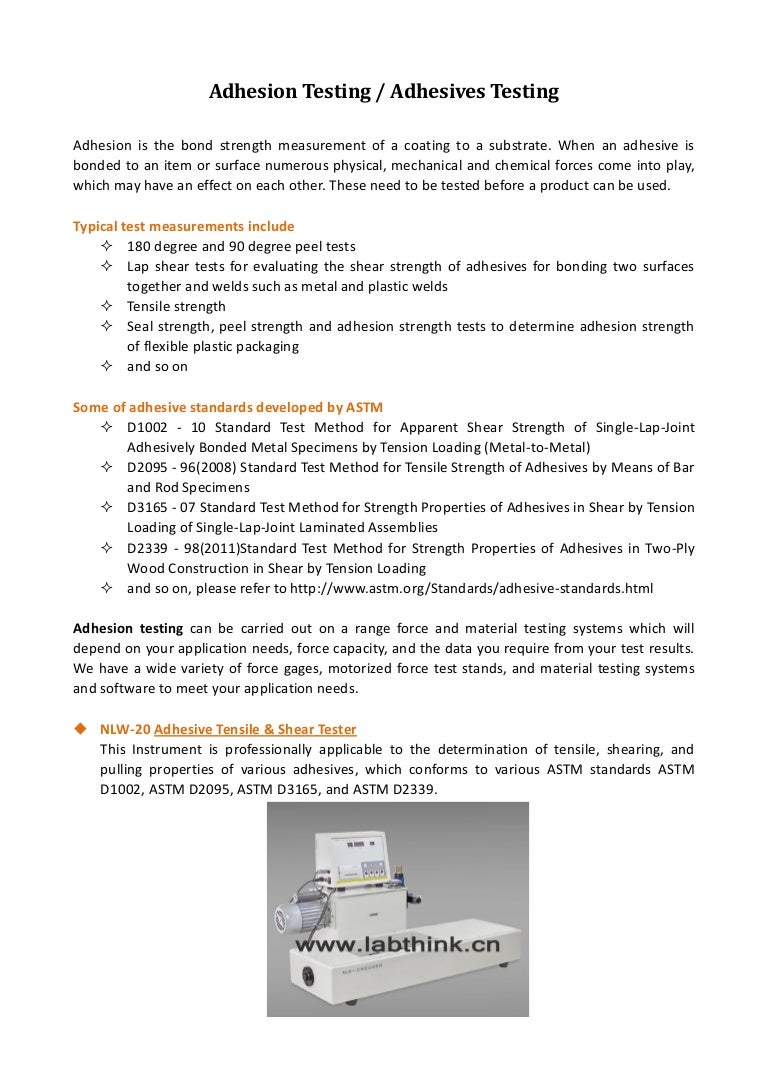 The Tpeel test 5355 is commonly used to assess the resistance of adhesive systems to types of test the coating surface is damaged and adhesion strength is inferred from the. ASTM D6252 — Standard Test Method for Peel Adhesion of PressureSensitive Label Stocks at a 90° Angle ASTM D903 — Standard Test Method for Peel or Stripping Strength of Adhesive Bonds ASTM D1876 — Standard Test Method for Peel Resistance of Adhesives (TPeel Test). Howto Do a Peel Adhesion Test in 3 Steps Step 1Sample Preparation Apply the sample as agreed upon with the client, noting any differences from the recommended Step 2 Determination of Adhesion Insert the tail of the sample into the roller jaw and pull gently to lock Wrap a Step 3.
