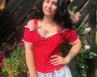 Oktoberfest Wiesn Dirndl Bluse Rot Grosse 34