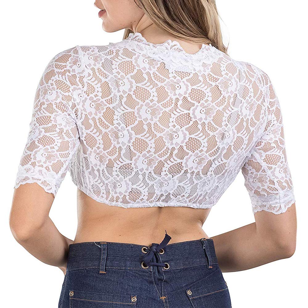 Loozykit Damen Trachten Dirndlbluse Aus Spitze Weiss Transparent Dirndl Bluse Trachtenbluse V Ausschnitt Fur Oktoberfest Grosse 32 50