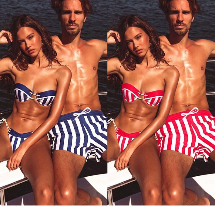 21 Couple Swimwear Stripe Bandeau Push Up Bikini Set New Womens Bandage Thong And Mens Swimming Trunk Beach Wear Swimsuit From Apparel Market 10 86 Dhgate Com