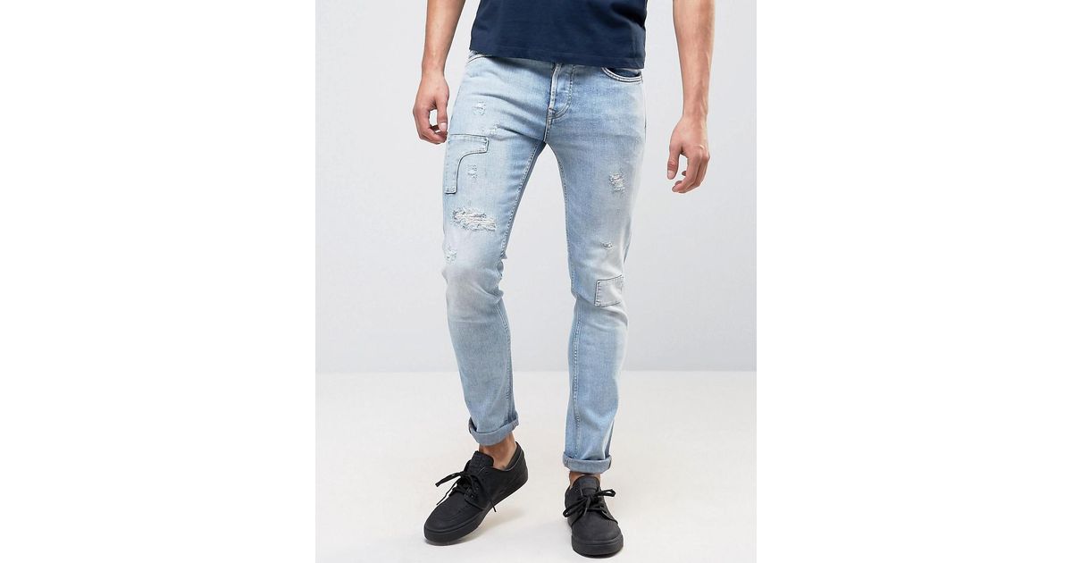 Pepe Jeans Denim Pepe Archive Eddy Skinny Fit Jean Bleach Destroyed Wash In Blue For Men Lyst