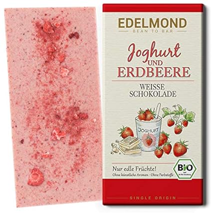 Edelmond Bio Weisse Erdbeer Schokolade Mit Joghurt Und Getrockneten Fruchten In Bester Rohkost Qualitat Ohne Farbstoffe Ohne Soja Emulgatoren 1 Tafel Amazon De Lebensmittel Getranke