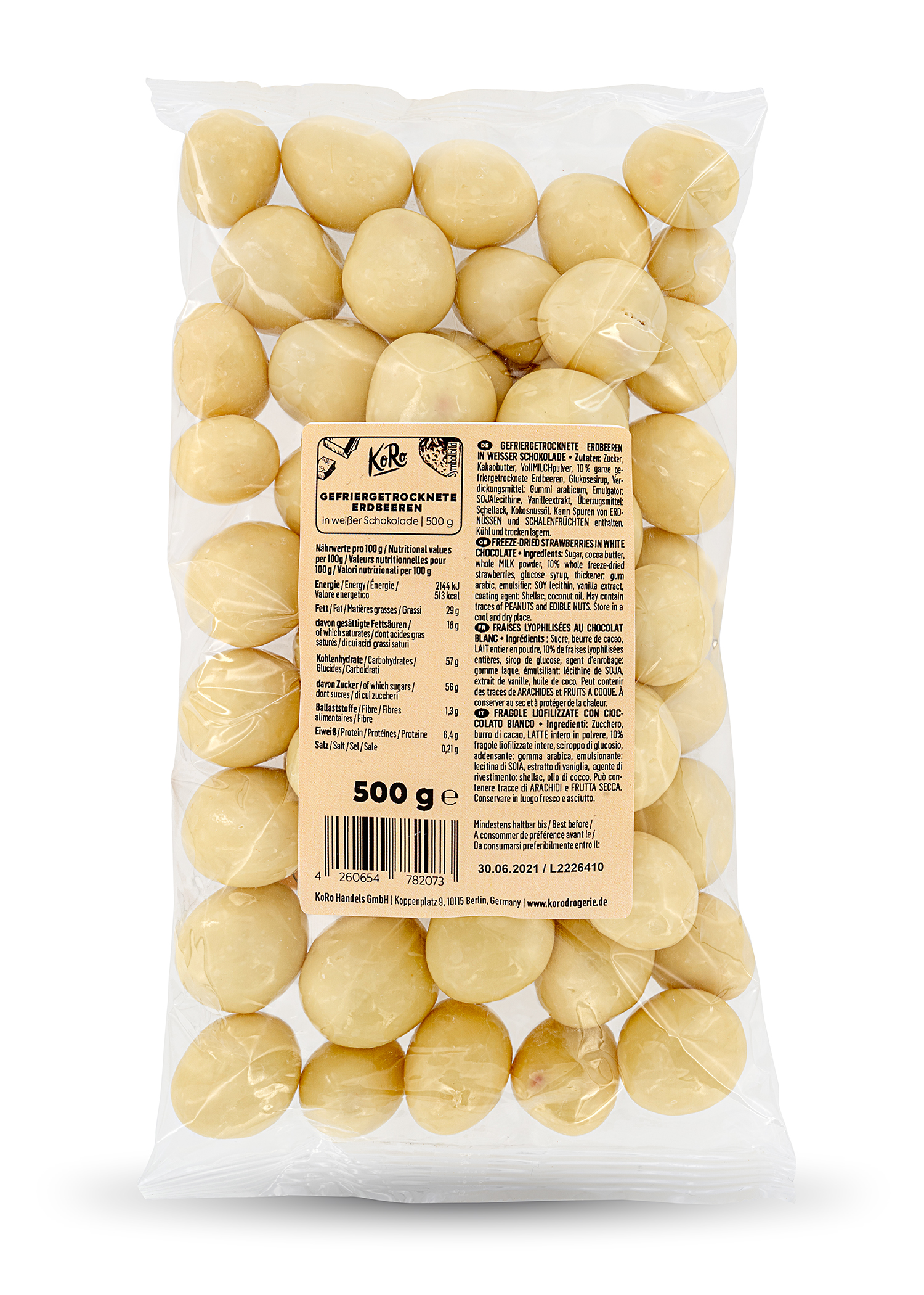 Gefriergetrocknete Weisse Schoko Erdbeeren Kaufen Koro