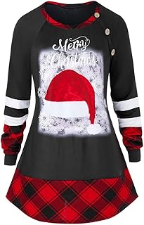 Geilisungren Damen Weihnachten Bluse Weihnachtsdruck Pullover Casual Rundhals Langarmshirt Lose Taschen Tunika Tops Weihnachtspulli Sweatshirt Christmas