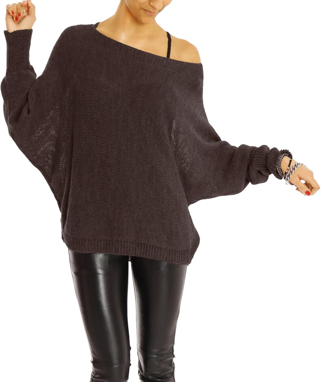 Bestyledberlin Damen Pullover Strick Pulli T35p Dunkelbraun Gr One Size S M Amazon De Bekleidung