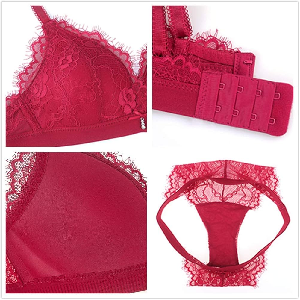 Shekini Damen Bh Set Spitze Triangel Bh Unterwasche Bralette Panty Gepolstert Bh Nicht Abnehmbarer Bra Slip Dessous Set Mit Hakenverschluss Und Verstellbare Trager Rot L Dessus De