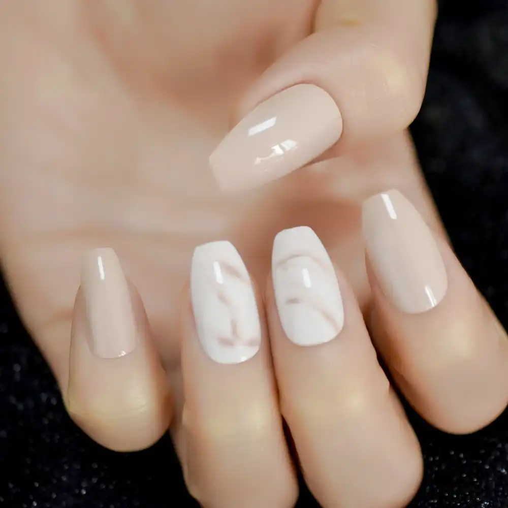 Nude Ballerina Gefalschte Nagel Marmor Weiss Naturliche Tipps Medium Grosse Sarg Form Falsche Ballett Fingernagel Falsche Nagel Aliexpress