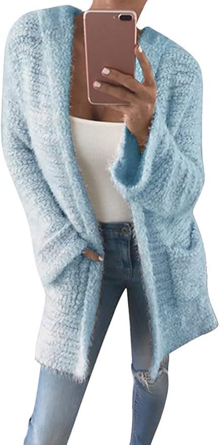 Fuweiencore Damen Strickjacke Warme Wolle Taschen Blau S Amazon De Kuche Haushalt