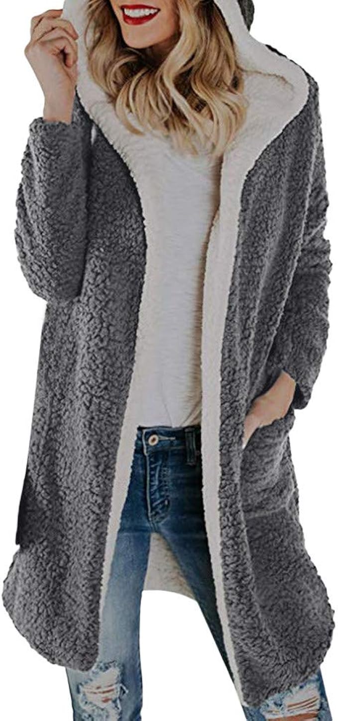 Geili Damen Wintermantel Wollmantel Warme Kunstliche Wolle Jacken Mit Kapuze Frauen Wintermode Teddy Fleecejacke Lang Fleecemantel Winterjacke Ubergangsjacke Cardigan Mit Taschen Amazon De Bekleidung