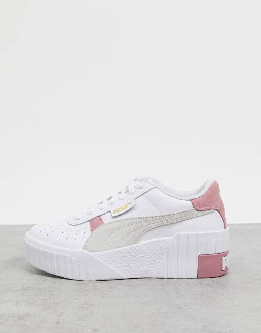 Puma Cali Sneaker Mit Keilabsatz In Weiss Und Rosa Asos