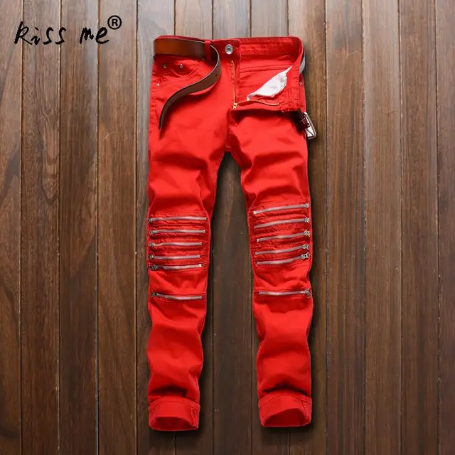Grosshandel Top Herren Denim Hosen Moto Zippers Hosen Klassisch Zerrissene Rote Skinny Denim Biker Jeans Stretch Slim Hose Grosse 29 42 Von Flowter 106 02 Auf De Dhgate Com Dhgate