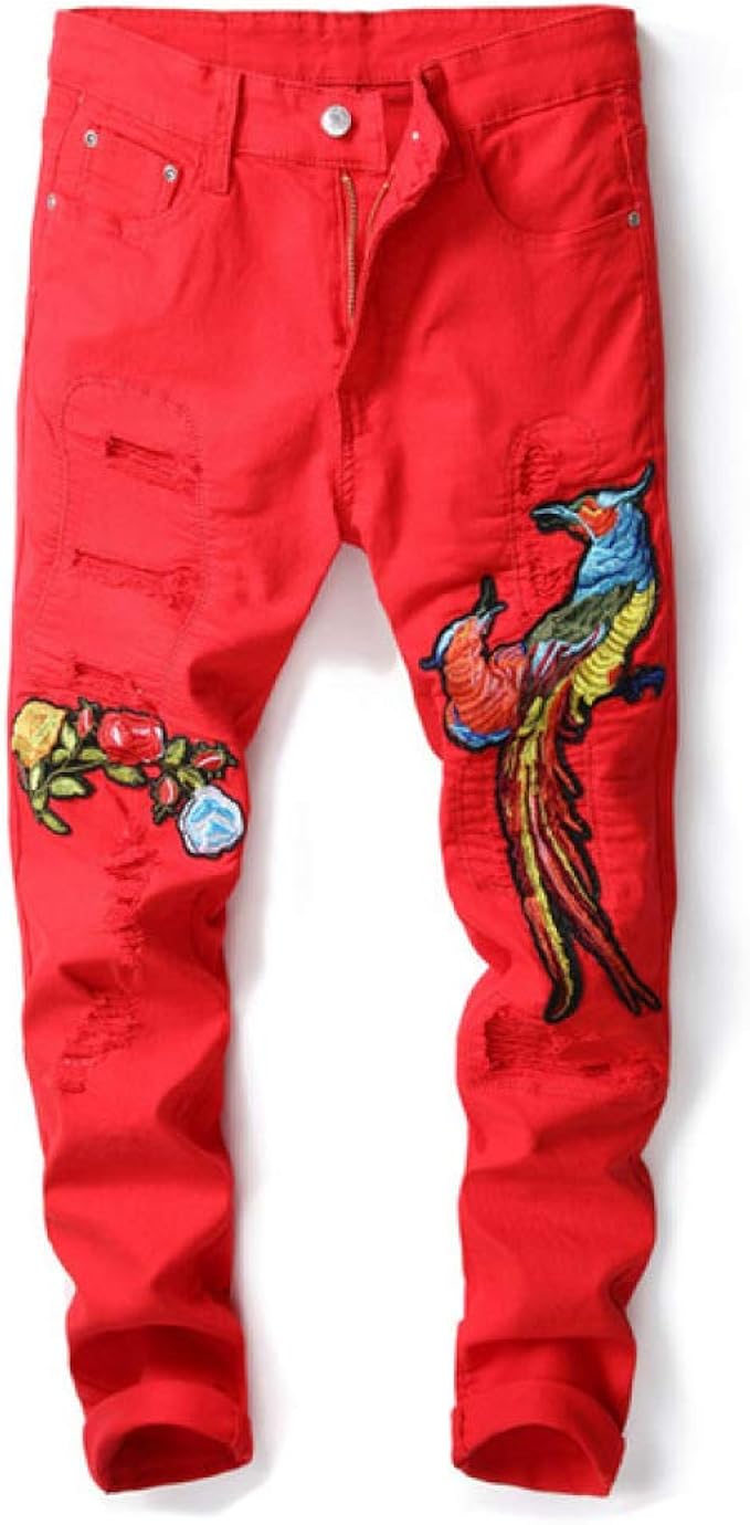 Loeay Mode Streetwear Hiphop Herren Ripped Biker Jeans Mit Stickerei Slim Fit Distressed Hosen Fur Mannliche Rote Hosen Amazon De Bekleidung