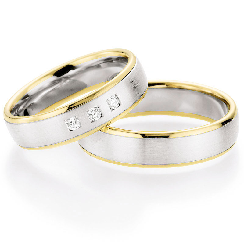 Trauringe Eheringe Im362 Bicolor Weiss Und Gelbgold 1 Diamant Matt
