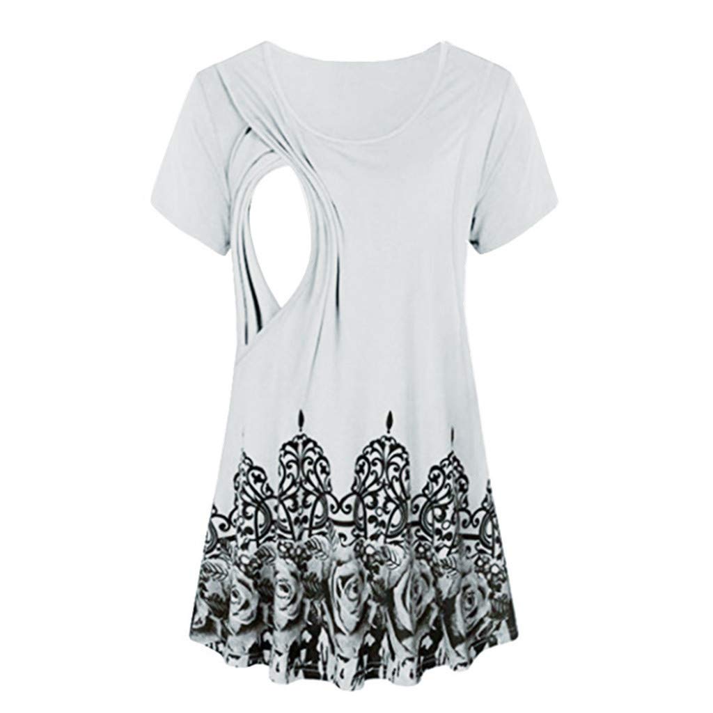Battnot Damen Umstandsmode Blusen Sommer Kurzarm Rundhals Bequeme Schwangerschaft Blumen Druck Oberteil Krankenpflege Baby Mutterschafts Umstandstop Frauen Umstandstunika Kleidung T Shirt S Xxl Weiss