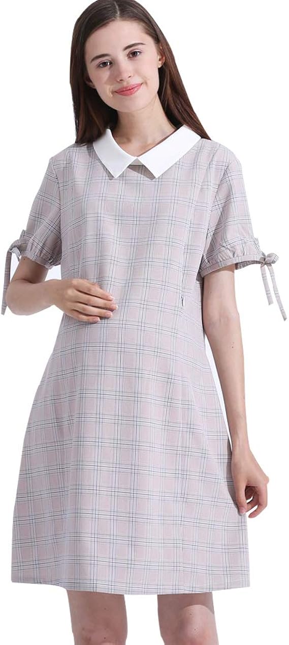 Umstandsmode Lose Kurzarm Kleid Dunkelrosa Plaid Rock Stillen Kleidung Weich Und Gemutlich Schwangere Frauen Geschenk Amazon De Bekleidung