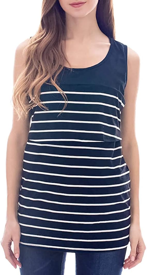 Battnot Damen Umstandsmode Blusen Sommer T Shirt Tank Tops Frauen Schwangere Mutterschaft Stillen Pflege Baby Oberteile Stripe Armelloses Freizeit Bequeme Umstandstops Tragershirt Mom Weste S Xxl Amazon De Bekleidung