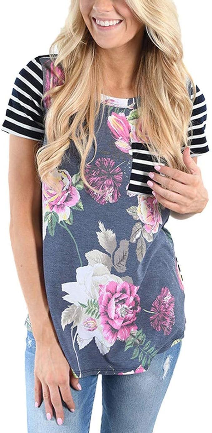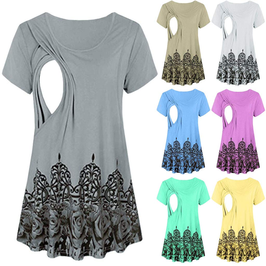 Battnot Damen Umstandsmode Blusen Sommer Kurzarm Blumen Streifen Druck Bequeme Schwangerschaft Oberteil Stillen Krankenpflege Baby Mutterschafts Umstandstop Frauen Umstandstunika Womens T Shirt Xxl Amazon De Bekleidung