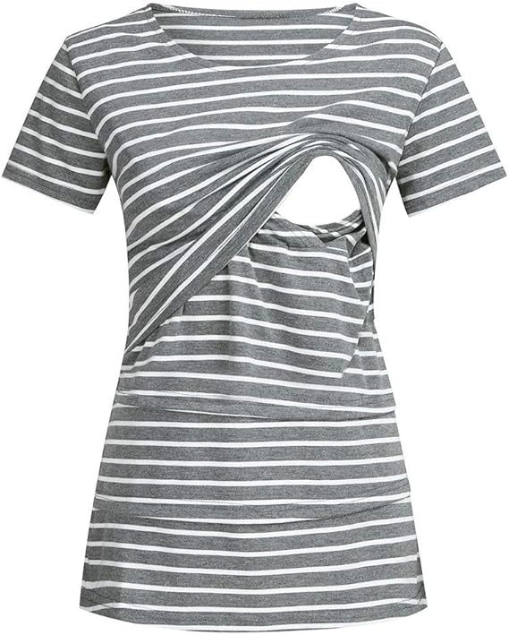 Battnot Damen Umstandsmode Blusen Sommer T Shirt Tops Frauen Schwangere Mutterschaft Stillende Oberteile Streifen Kurzarm Rundhals Freizeit Bequeme Umstandstops Tragershirt Weste Kleidung S 3xl Xxxl Amazon De Bekleidung