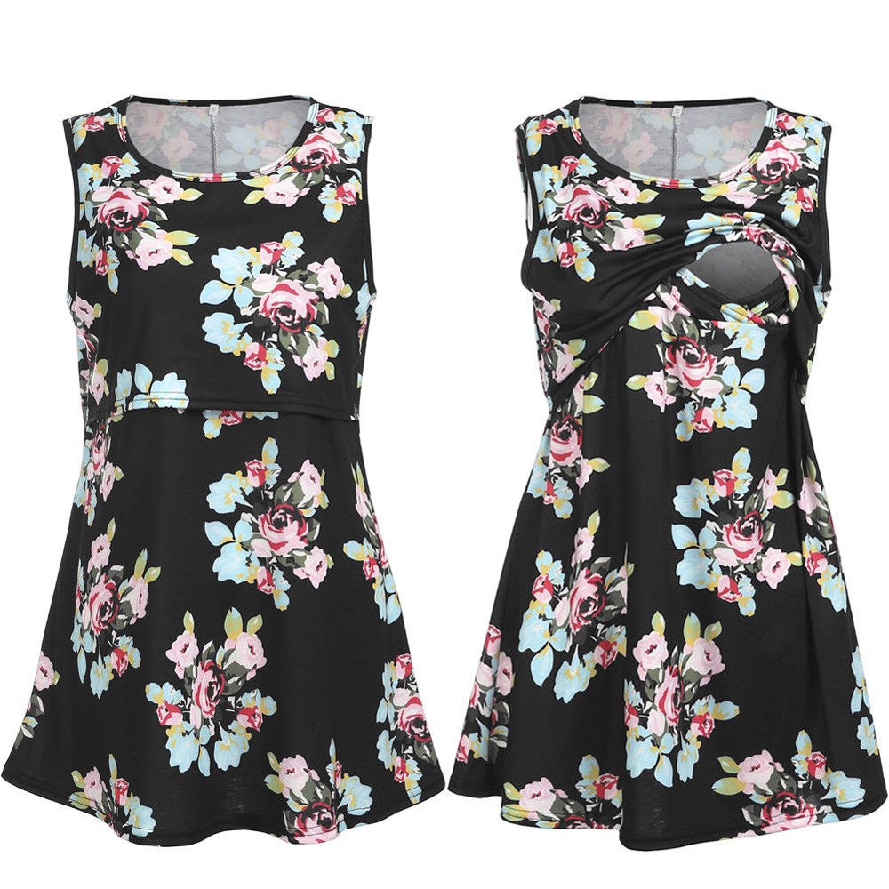 Umstandskleidung Battnot Damen Umstandsmode Blusen Sommer Armelloses Tank Tops Bequemes Schwangeres Blumen Druck Oberteil Krankenpflege Baby Mutterschaftswesten Pflege Umstandstop Frauen Umstandstunika T Shirt S Xxl Baby Luxdental Si